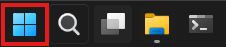 ①タスクバーの「スタートアイコン」をクリックします