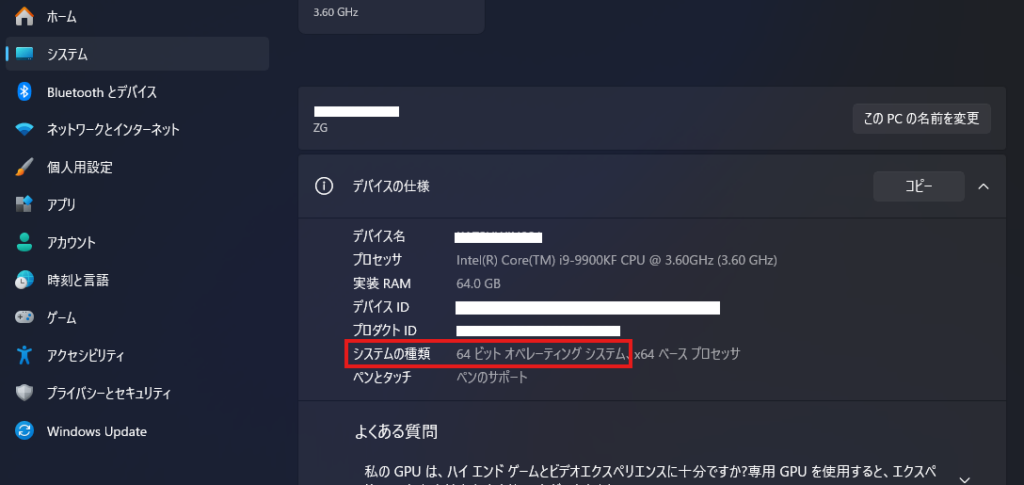 Windows11を使っている人は64bit版で確定と考えてよいでしょう。