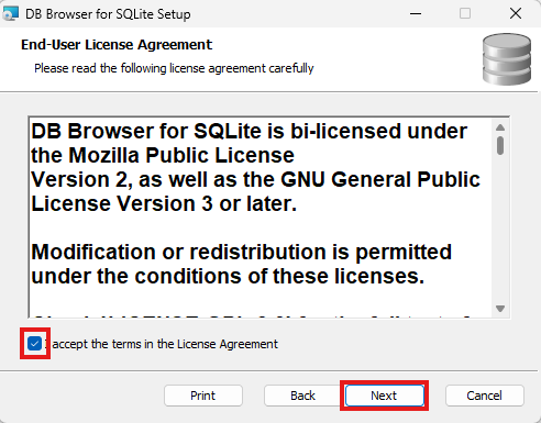 3.「accept the ….」にチェックを入れ、「Next」をクリックします